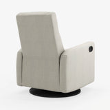 UPHOLSTERED SWIVEL GLIDER AND RECLINING CHAIR WITH INTEGRATED FOOTREST, IDEAL FOR FEEDING YOUR LITTLE ONES